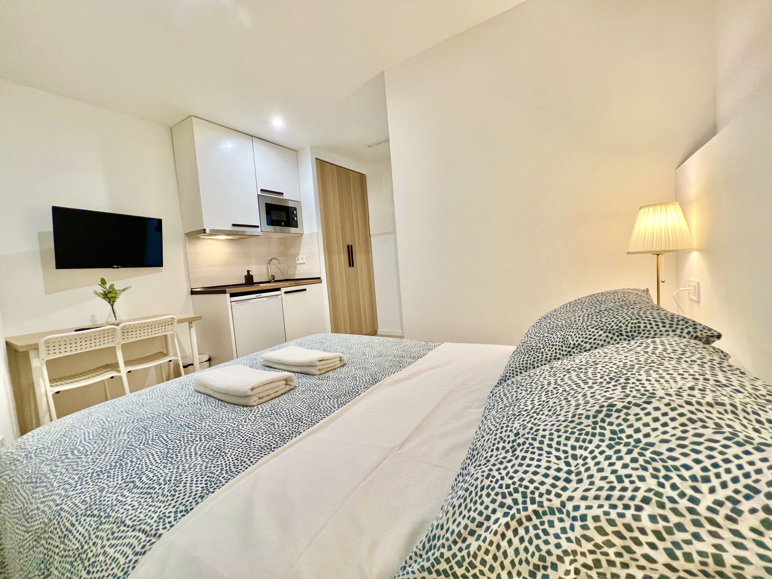 Cama matrimonial de 135cm x 190cm, ventana con vista al patio interior del edificio, Cocina, mesa comedor, WIFI, TV 32” smart, Secador de pelo, Aire acondicionado, agua caliente, calefacción central (1 nov al 30 de marzo), gel de ducha, toallas cuerpo y manos, sábanas y edredón y Papel Higiénico, Ropa de cama, Almohadas, espacio para guardar la ropa, Aire frio/caliente. Limpieza SOLO antes de su check-in, cocina con hornilla inducción magnética, Microondas, nevera, trapos de cocina, cuchillos, ensaladera, saca corchos, tijeras, tabla de picar, posa platos.