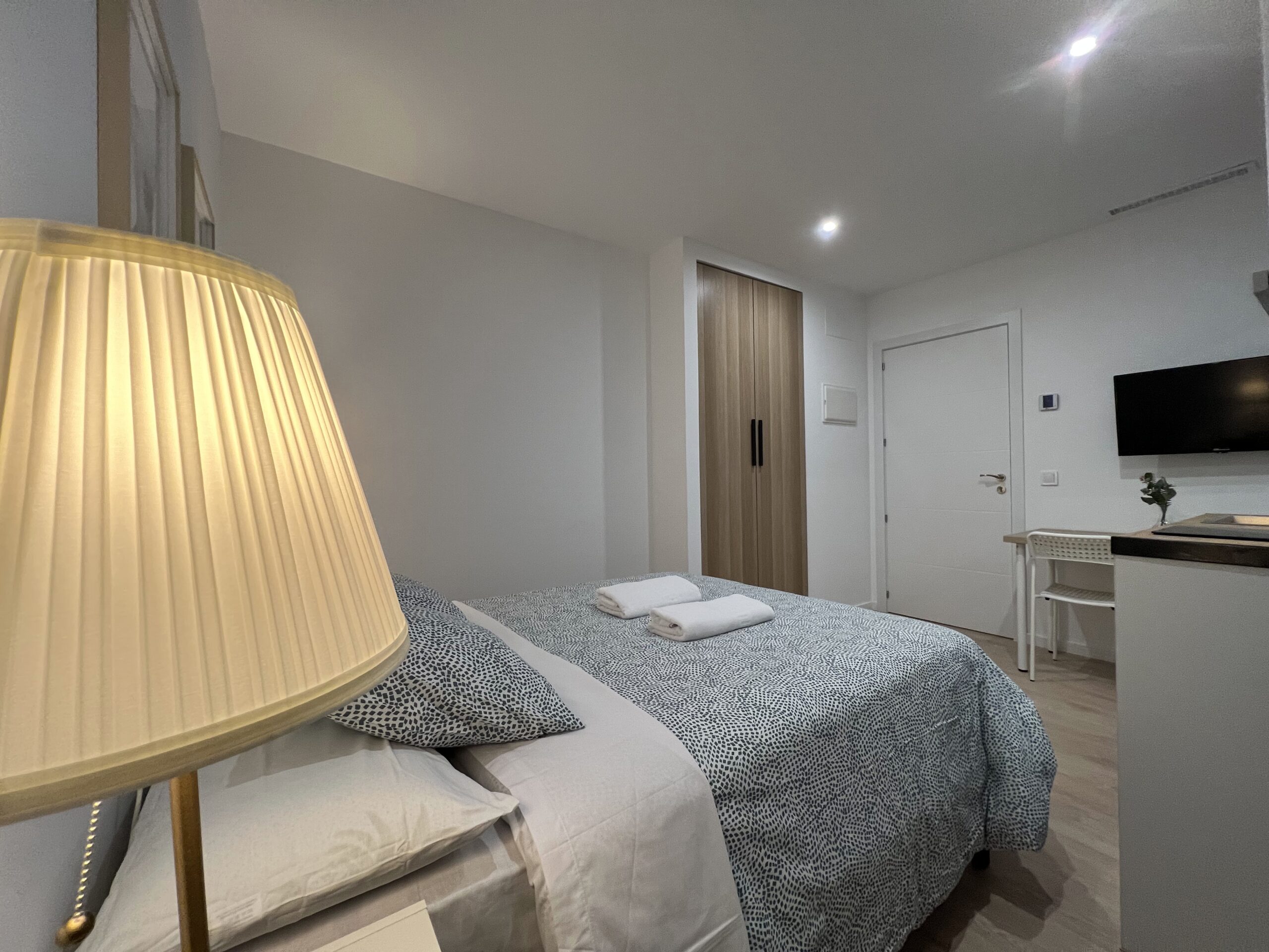 Cama matrimonial de 135cm x 190cm, ventana con vista a la ciudad, Cocina, mesa comedor, WIFI, TV 32” smart, Secador de pelo, Aire acondicionado, agua caliente, calefacción central (1 nov al 30 de marzo), gel de ducha, toallas cuerpo y manos, sábanas y edredón y Papel Higiénico, Ropa de cama, Almohadas, espacio para guardar la ropa, Aire frio/caliente. Limpieza SOLO antes de su check-in, cocina con hornilla inducción magnética, Microondas, nevera, trapos de cocina, cuchillos, ensaladera, saca corchos, tijeras, tabla de picar, posa platos.