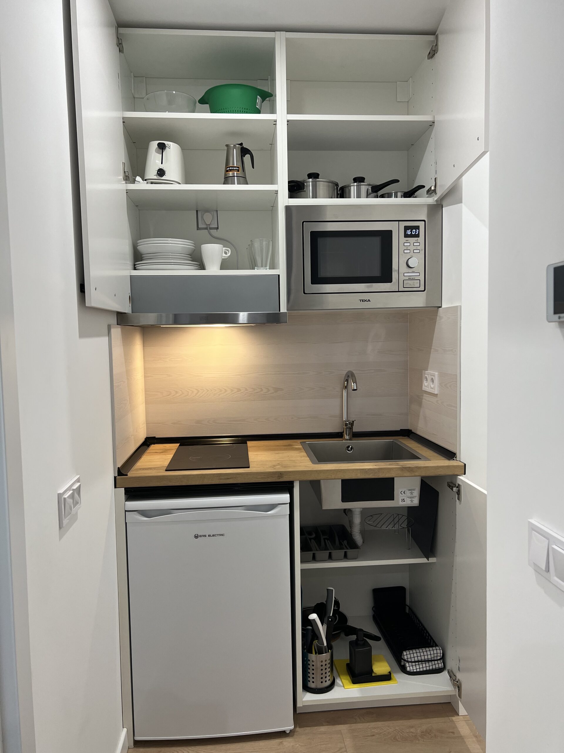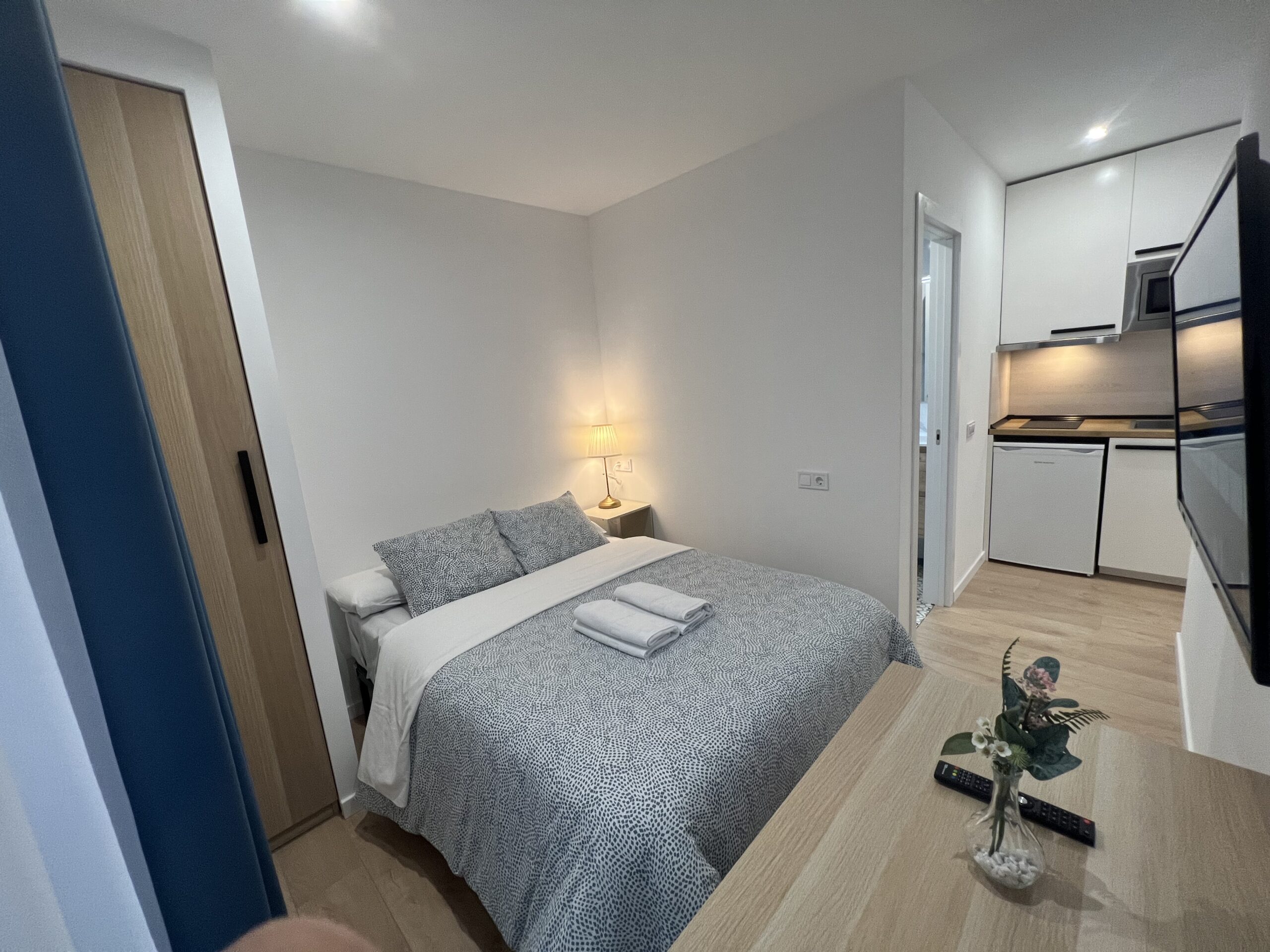 Cama matrimonial de 135cm x 190cm, ventana con vista a la ciudad, Cocina, mesa comedor, WIFI, TV 32” smart, Secador de pelo, Aire acondicionado, agua caliente, calefacción central (1 nov al 30 de marzo), gel de ducha, toallas cuerpo y manos, sábanas y edredón y Papel Higiénico, Ropa de cama, Almohadas, espacio para guardar la ropa, Aire frio/caliente. Limpieza SOLO antes de su check-in, cocina con hornilla inducción magnética, Microondas, nevera, trapos de cocina, cuchillos, ensaladera, saca corchos, tijeras, tabla de picar, posa platos.