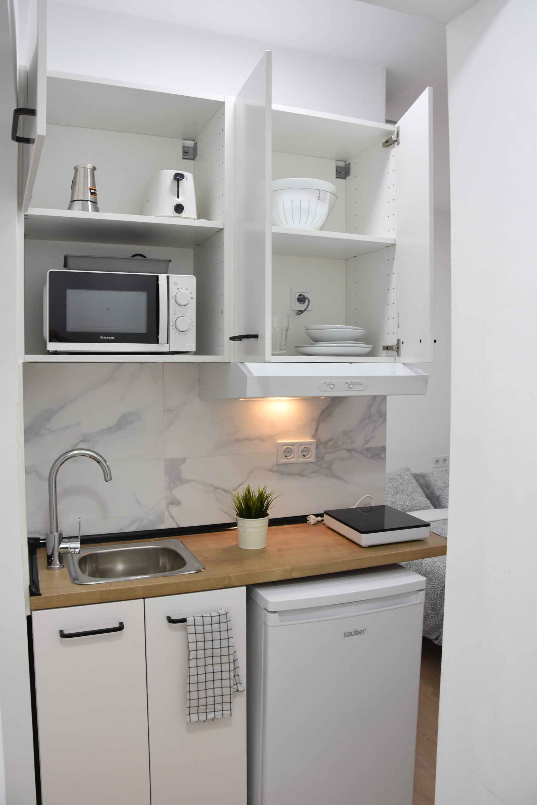Cama matrimonial de 135cm x 190cm, Cocina, mesa comedor, WIFI, TV 32” smart, Secador de pelo, Aire acondicionado, agua caliente, calefacción central (1 nov al 30 de marzo), gel de ducha, toallas cuerpo y manos, sábanas y edredón y Papel Higiénico, Ropa de cama, Almohadas, Persianas, espacio para guardar la ropa, Aire frio/caliente, ingreso a la propiedad es automatizado. Limpieza SOLO antes de su check-in, cocina 1 hornilla inducción magnética, Microondas, nevera, trapos de cocina, cuchillos, ensaladera, saca corchos, tijeras, tabla de picar, posa platos.