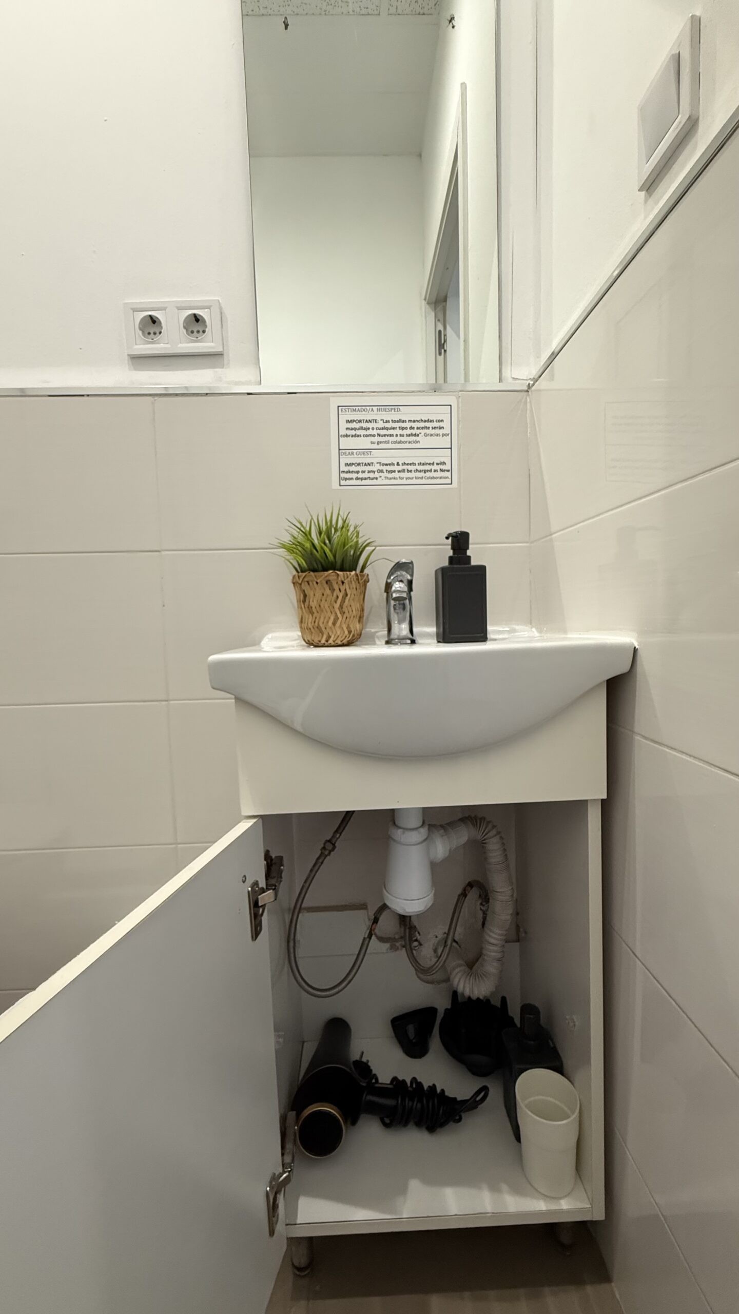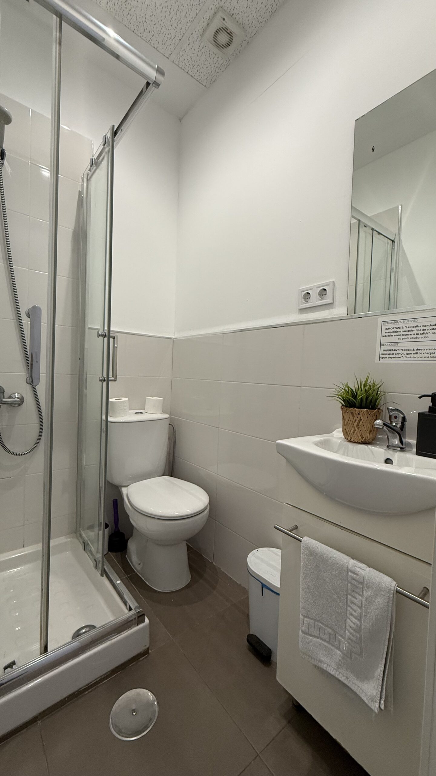 Cama matrimonial de 135cm x 190cm, Cocina, mesa comedor, WIFI, TV 32” smart, Secador de pelo, Aire acondicionado, agua caliente, calefacción central (1 nov al 30 de marzo), gel de ducha, toallas cuerpo y manos, sábanas y edredón y Papel Higiénico, Ropa de cama, Almohadas, Persianas, espacio para guardar la ropa, Aire frio/caliente, entrega de llaves por parte del anfitrión. Limpieza SOLO antes de su check-in, cocina 1 hornilla inducción magnética, Microondas, nevera, trapos de cocina, cuchillos, ensaladera, saca corchos, tijeras, tabla de picar, posa platos.