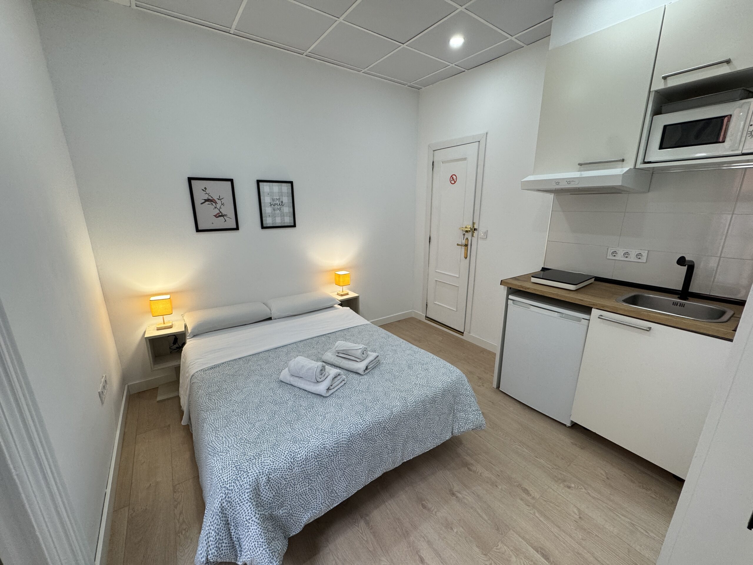 Cama matrimonial de 135cm x 190cm, Cocina, mesa comedor, WIFI, TV 32” smart, Secador de pelo, Aire acondicionado, agua caliente, calefacción central (1 nov al 30 de marzo), gel de ducha, toallas cuerpo y manos, sábanas y edredón y Papel Higiénico, Ropa de cama, Almohadas, Persianas, espacio para guardar la ropa, Aire frio/caliente, ingreso a la propiedad es automatizado. Limpieza SOLO antes de su check-in, cocina 1 hornilla inducción magnética, Microondas, nevera, trapos de cocina, cuchillos, ensaladera, saca corchos, tijeras, tabla de picar, posa platos.