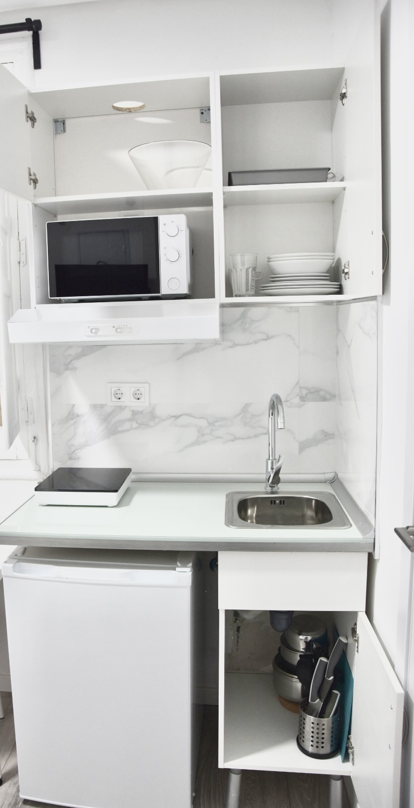 Cama matrimonial de 135cm x 190cm, Cocina, mesa comedor, WIFI, TV 32” Smart, Secador de pelo, Aire acondicionado, agua caliente, calefacción central (1 nov al 30 de marzo), gel de ducha, toallas cuerpo y manos, sábanas y edredón y Papel Higiénico, Ropa de cama, Almohadas, Persianas, espacio para guardar la ropa, Aire frio/caliente, entrega de llaves por parte del anfitrión. Limpieza SOLO antes de su Check-in, cocina 1 hornilla inducción magnética, Microondas, nevera, trapos de cocina, cuchillos, ensaladera, saca corchos, tijeras, tabla de picar, posa platos.
