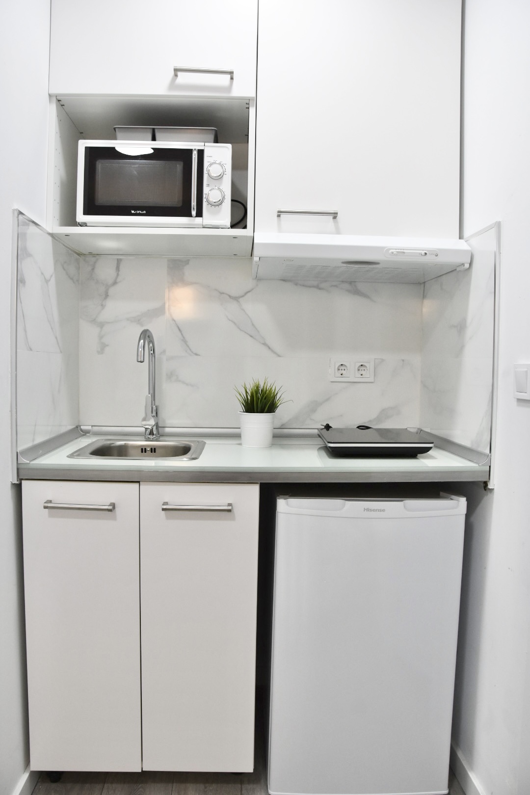 Cama matrimonial de 135cm x 190cm, Cocina, mesa comedor, WIFI, TV 32” Smart, Secador de pelo, Aire acondicionado, agua caliente, calefacción central (1 nov al 30 de marzo), gel de ducha, toallas cuerpo y manos, sábanas y edredón y Papel Higiénico, Ropa de cama, Almohadas, Persianas, espacio para guardar la ropa, Aire frio/caliente, entrega de llaves por parte del anfitrión. Limpieza SOLO antes de su Check-in, cocina 1 hornilla inducción magnética, Microondas, nevera, trapos de cocina, cuchillos, ensaladera, saca corchos, tijeras, tabla de picar, posa platos.