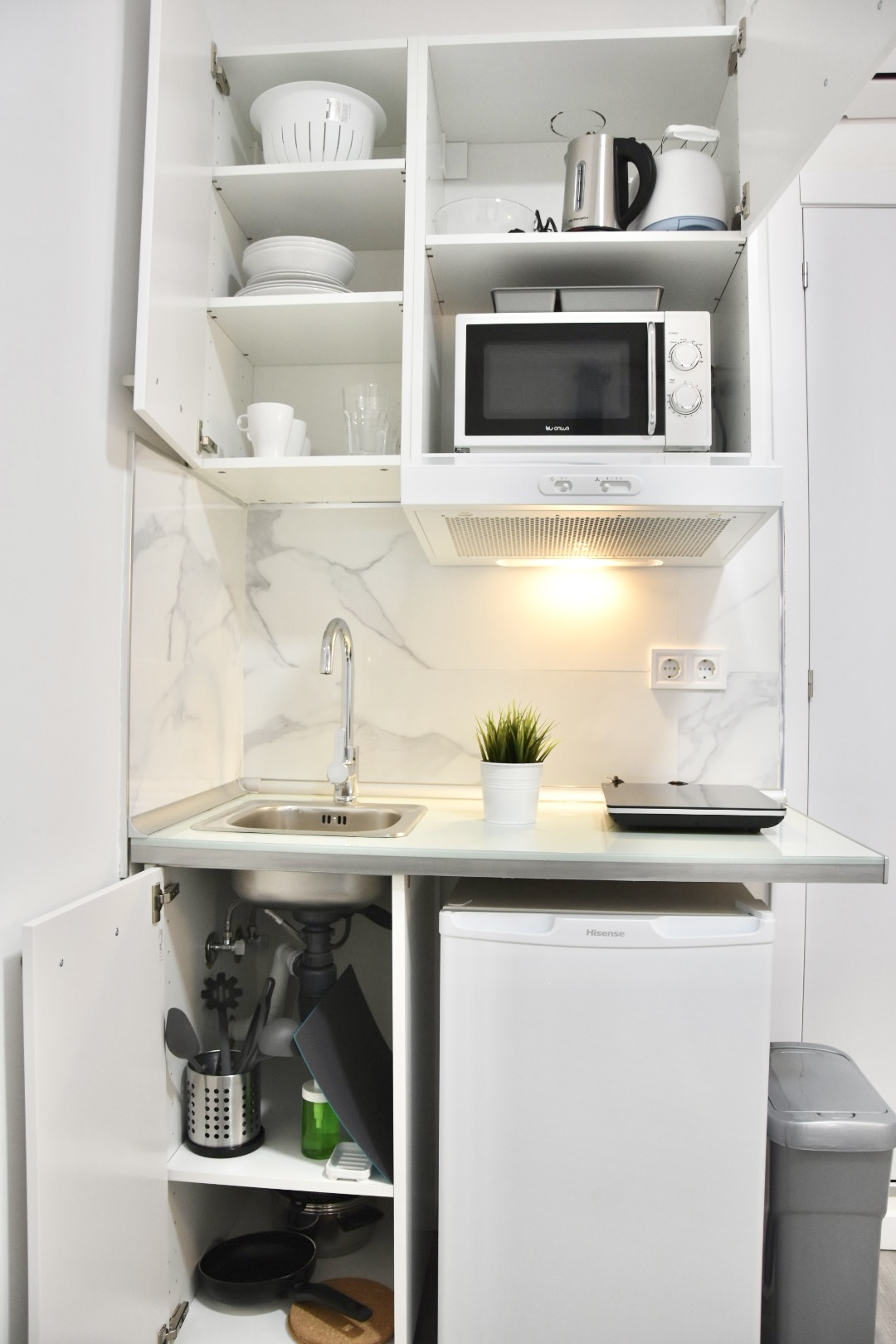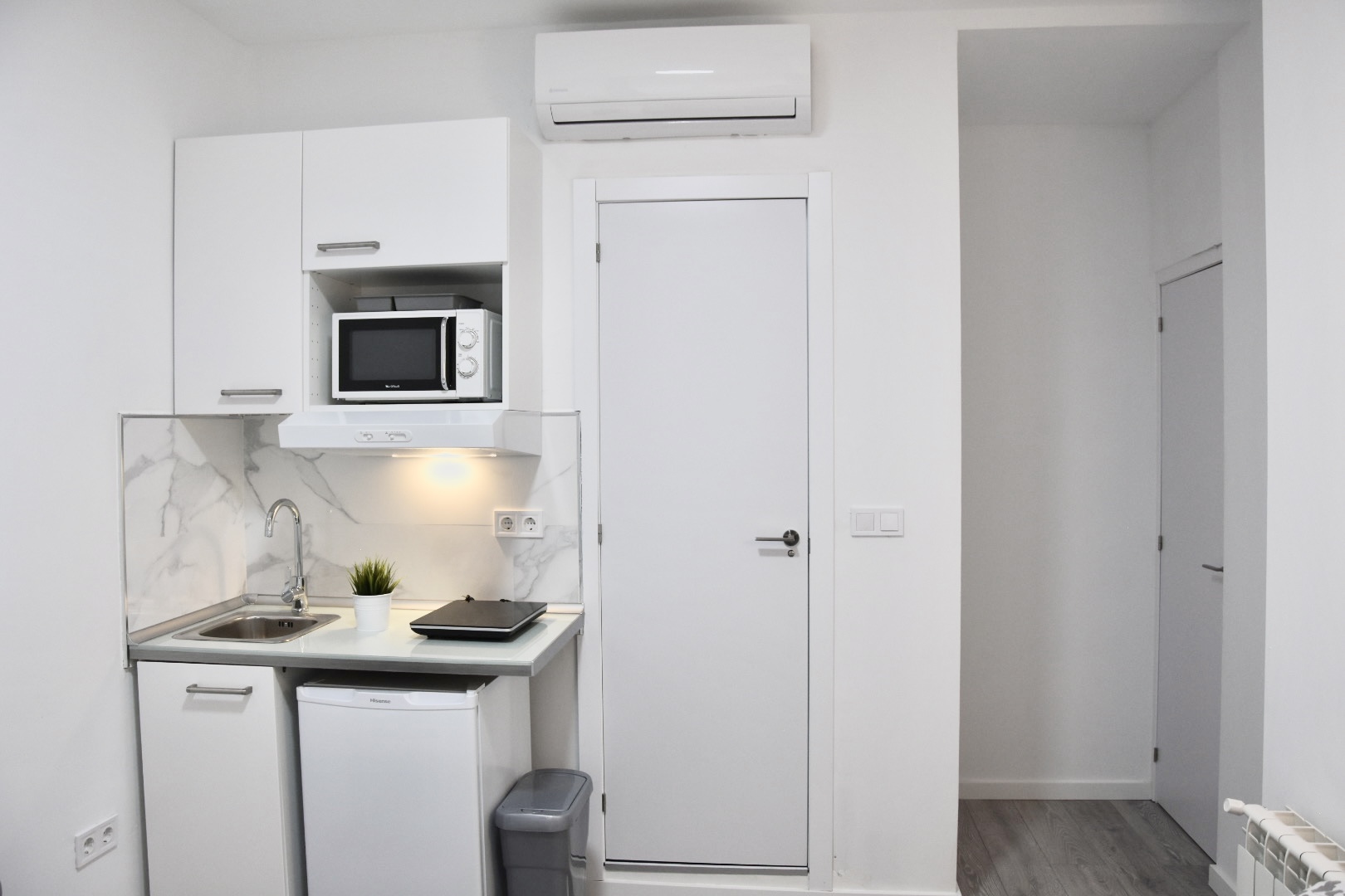 Cama matrimonial de 135cm x 190cm, Cocina, mesa comedor, WIFI, TV 32” Smart, Secador de pelo, Aire acondicionado, agua caliente, calefacción central (1 nov al 30 de marzo), gel de ducha, toallas cuerpo y manos, sábanas y edredón y Papel Higiénico, Ropa de cama, Almohadas, Persianas, espacio para guardar la ropa, Aire frio/caliente, entrega de llaves por parte del anfitrión. Limpieza SOLO antes de su Check-in, cocina 1 hornilla inducción magnética, Microondas, nevera, trapos de cocina, cuchillos, ensaladera, saca corchos, tijeras, tabla de picar, posa platos.