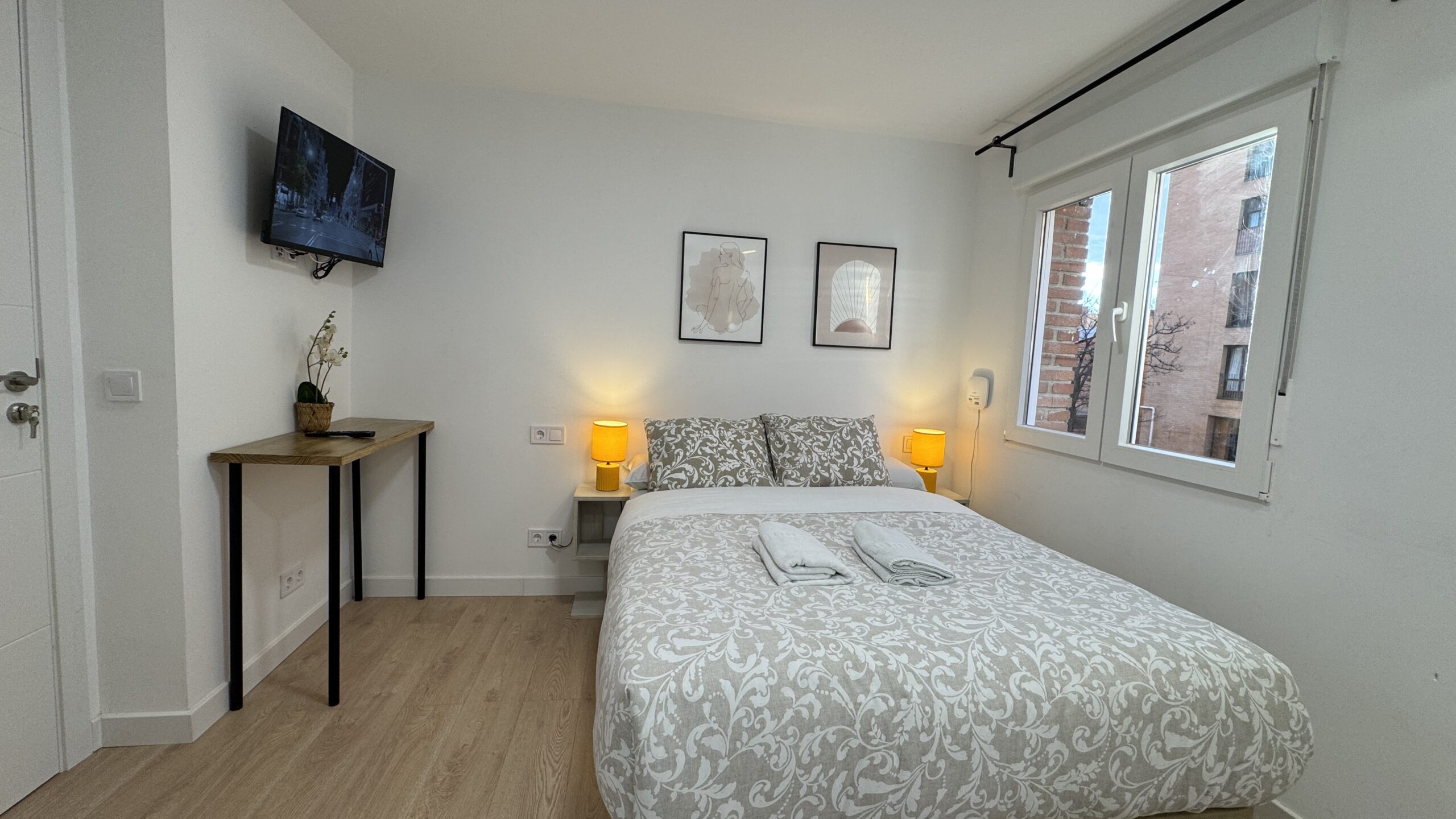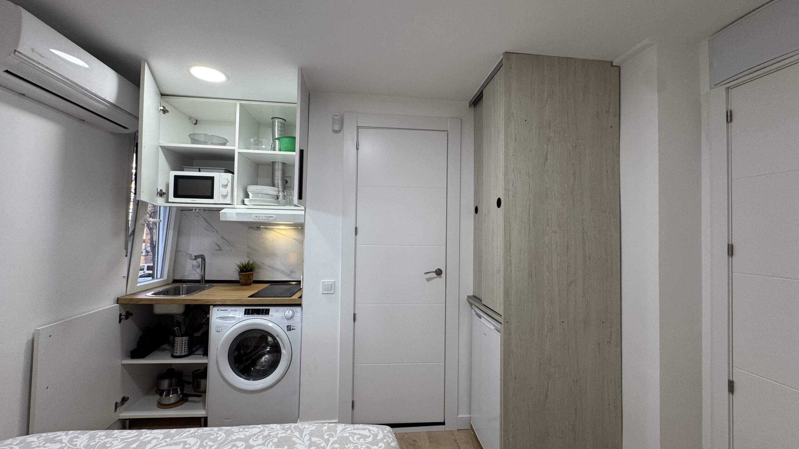 Estudio privado. Con baño privado, lavadora y cocina privada, WIFI y Aire acondicionado. todo dentro de su alojamiento. Bus 102 y 111 a pie de calle. cerca de Mendez Alvaro y Entrevias. Zonas ciclistas y mucho parque. Ventanal de suelo a techo con vistas a parque interior. Soleado con mucha iluminación natural.