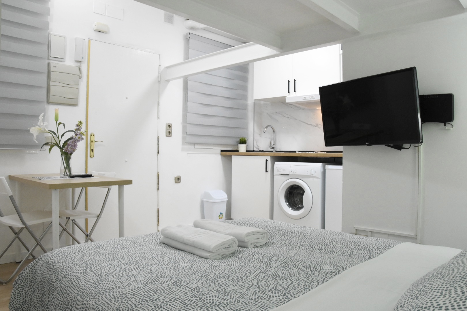 Estudio con baño privado y cocina privada, funcional SIN ASCENSOR, con Aire acondicionado Frio / Caliente y agua caliente. cómodo y céntrico en el barrio de lavapies. A tan solo 3 min a pie del metro lavapies.